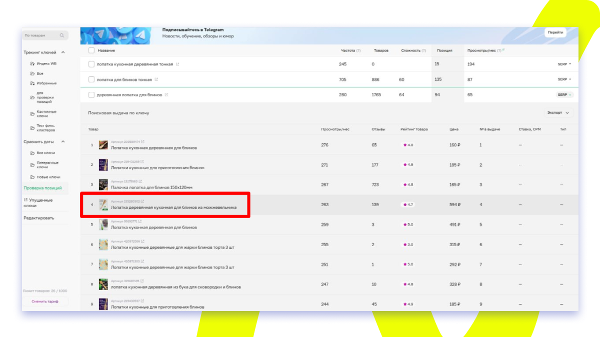 Пример 2: Выдача по запросу «лопатка для блинов деревянная» с авторизацией.