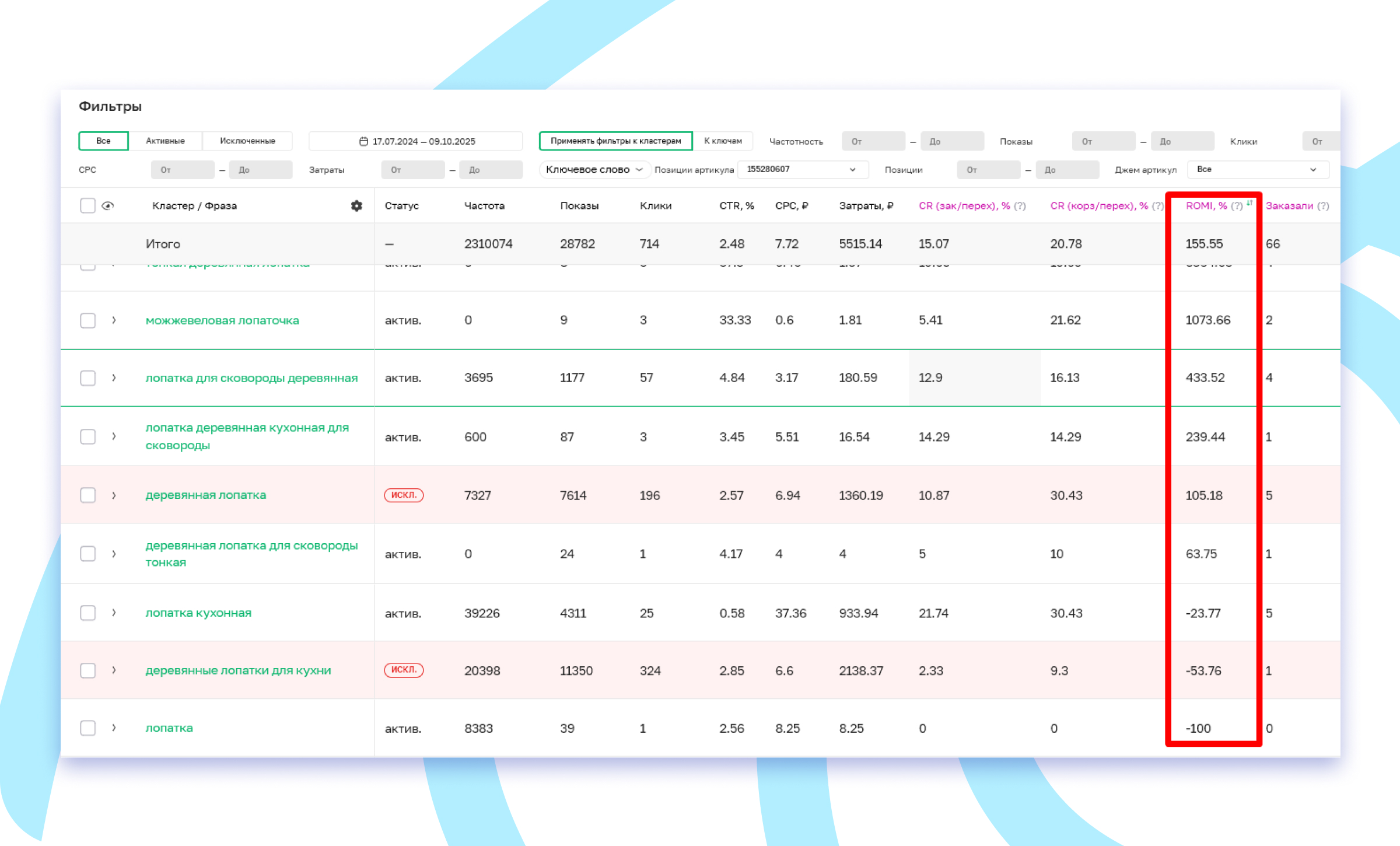 Слепое повышение ставок приведет только к росту расходов. Если товар и так плохо кликают и покупают, то реклама эту проблему не решит. Она только покажет ваш «слабый» товар большему числу людей. В итоге вы получите больше просмотров, но примерно такой же низкий процент заказов. Для алгоритмов это будет сигнал о том, что карточка нерелевантна запросам, и они могут понизить ее позиции. Сначала сделайте так, чтобы товар хорошо продавался сам по себе — и не придется завышать ставки для его раскрутки.