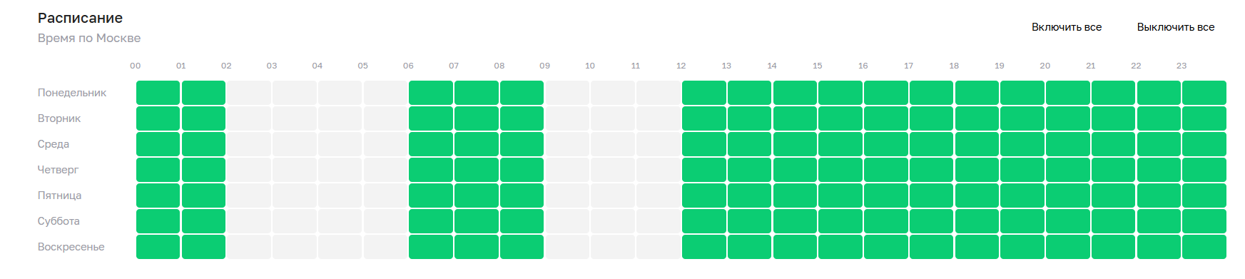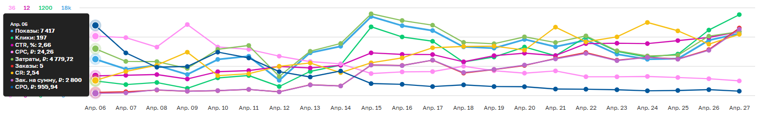 - Настроен график показов: исключили интервалы, когда показы были малоэффективны.
