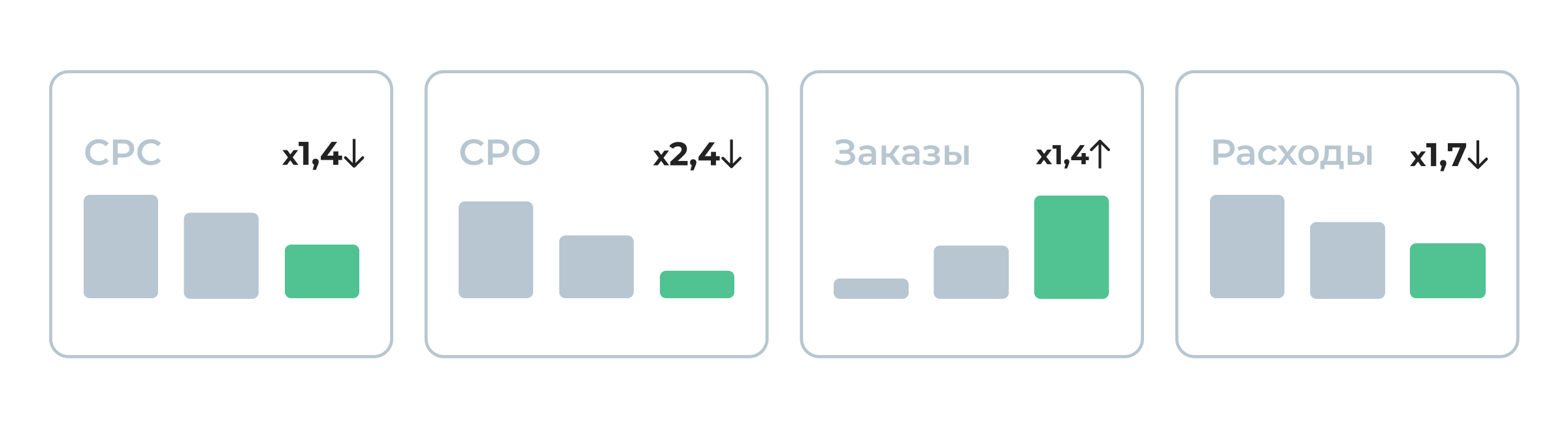 | Заказы | 54 | 75 | ↑ в ~ 1,4 раза |