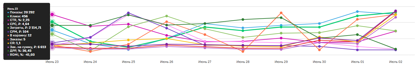 Сравнение рекламных кампаний: Неоценимо при распределении кластеров между аукционом и авторекламой. Принятие решений стало в разы проще.